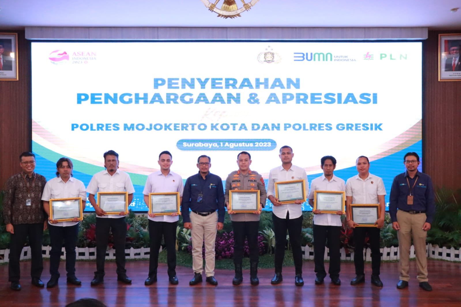 Apresiasi itu disampaikan langsung Agus Kuswardoyo kepada Kapolres Gresik AKBP Adhitya Panji Anom dan Kapolres Mojokerto Kota AKBP Wiwit Adi Satria bertempat di ruang Majapahit PT PLN Unit Induk Distribusi Jatim Surabaya.