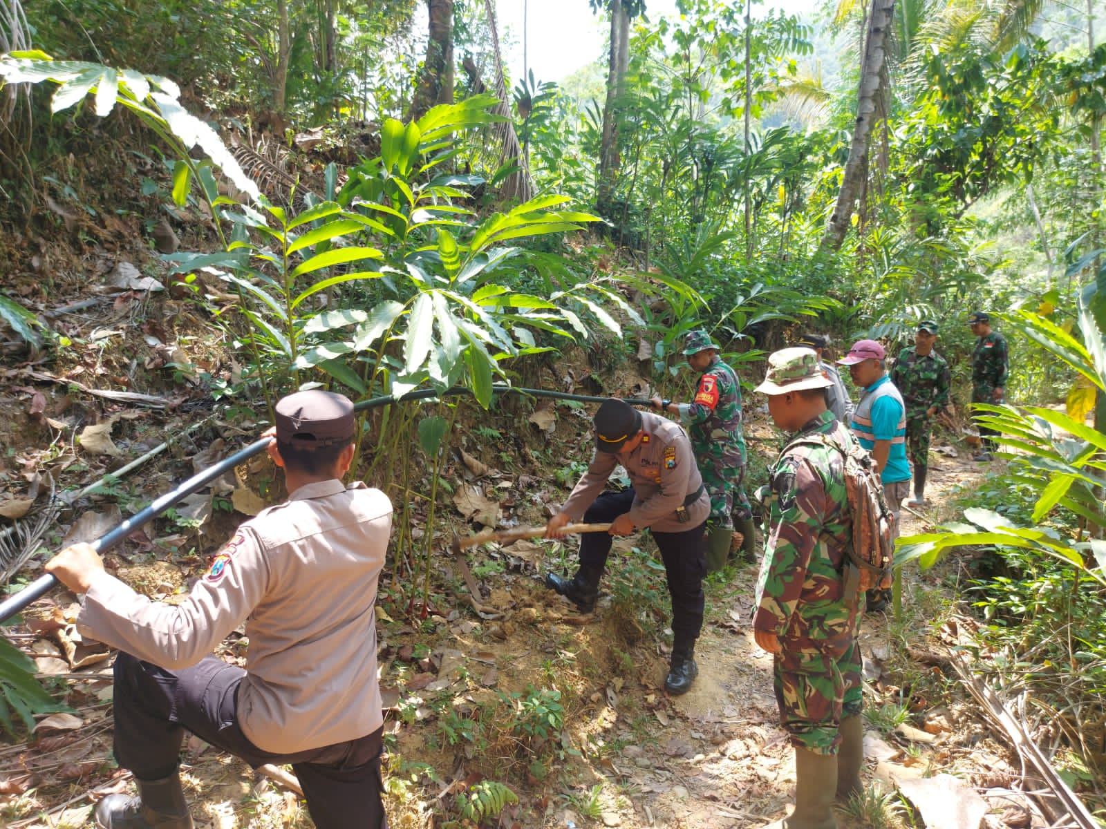 TRENGGALEK - Sinergitas TNI-Polri bersama masyarakat di Kabupaten Trenggalek memang patut diacungi jempol. Hal ini dibuktikan dengan kekompakan dalam pemasangan selang air yang dimotori oleh pemerintah desa Bogoran, Kecamatan Kampak, Kabupaten Trenggalek.