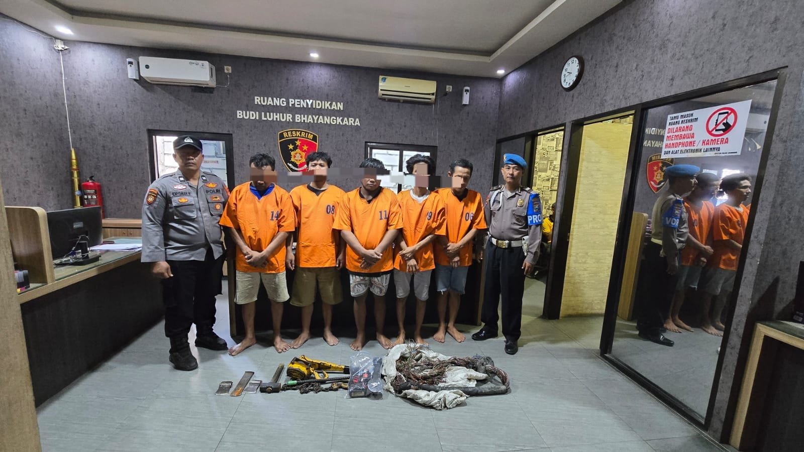 TANJUNGPERAK - Polsek Asemrowo Surabaya, Polres Pelabuhan Tanjung Perak berhasil membongkar aksi pencurian yang dilakukan oleh enam pelaku di bawah jembatan Jalan Kalianak, Surabaya, pada Sabtu, (24/8/2024) bulan lalu.